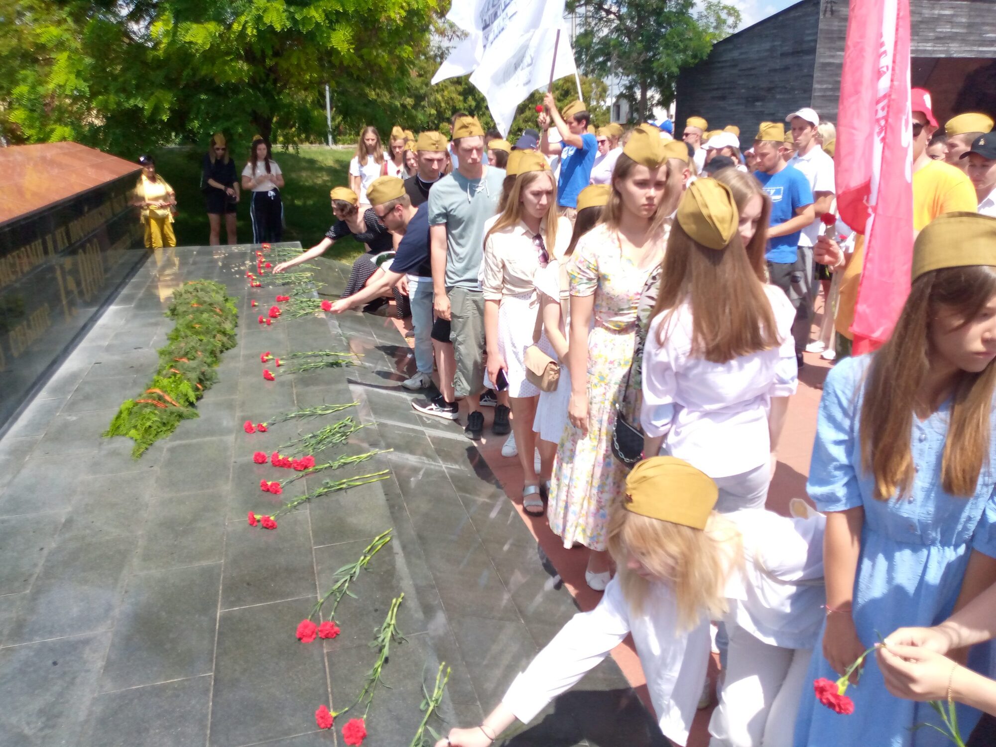 Сегодня участники военно-патриотической смены летнего спортивно-оздоровительного отдыха студентов МПГУ посетили село Мирное Симферопольского района, чтобы принять участие в церемонии возложения цветов к мемориалу жертвам фашистской оккупации концлагеря «Красный». Это мероприятие – важная веха в истории университета, более того, в этом году оно совпало со 150-летием учебного заведения.