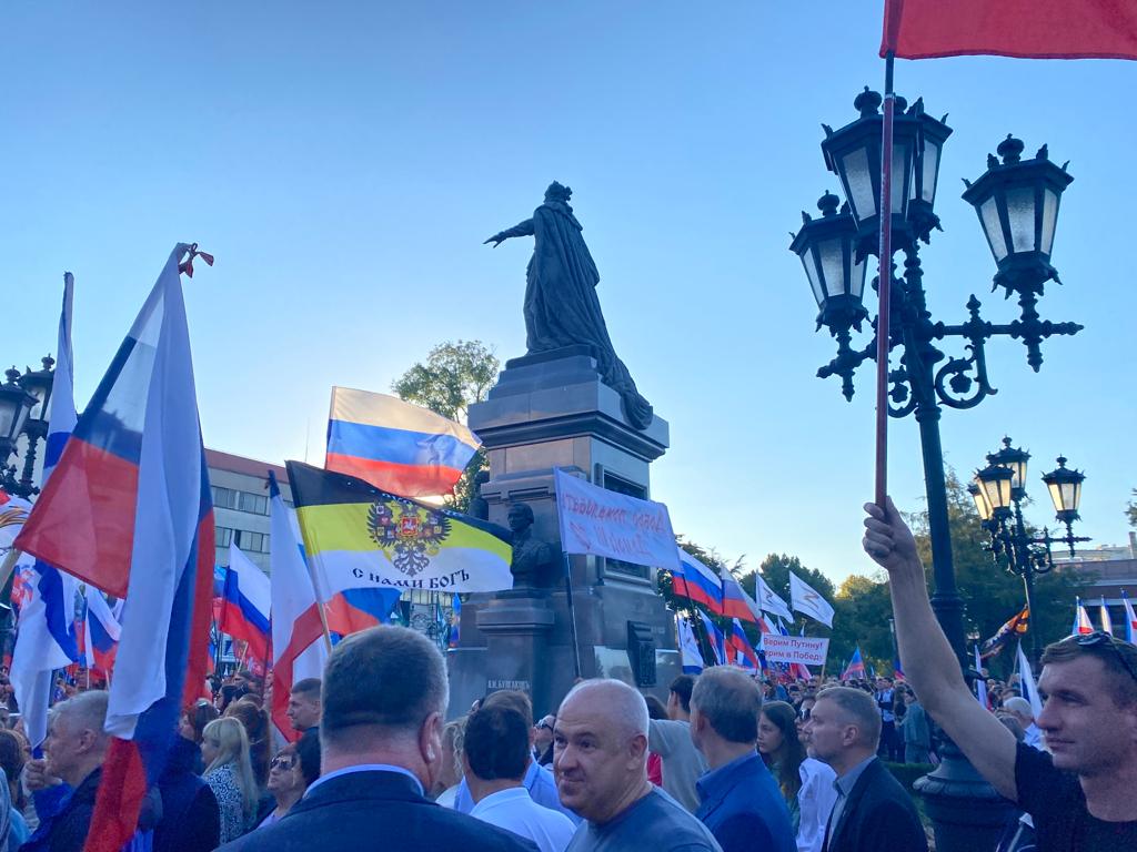 Тысячи симферопольцев собрались в Екатерининском саду на митинг-концерт в поддержку итогов референдумов в Донецкой и Луганской народных республиках, Херсонской и Запорожской областях, а также включения этих регионов в состав Российской Федерации.