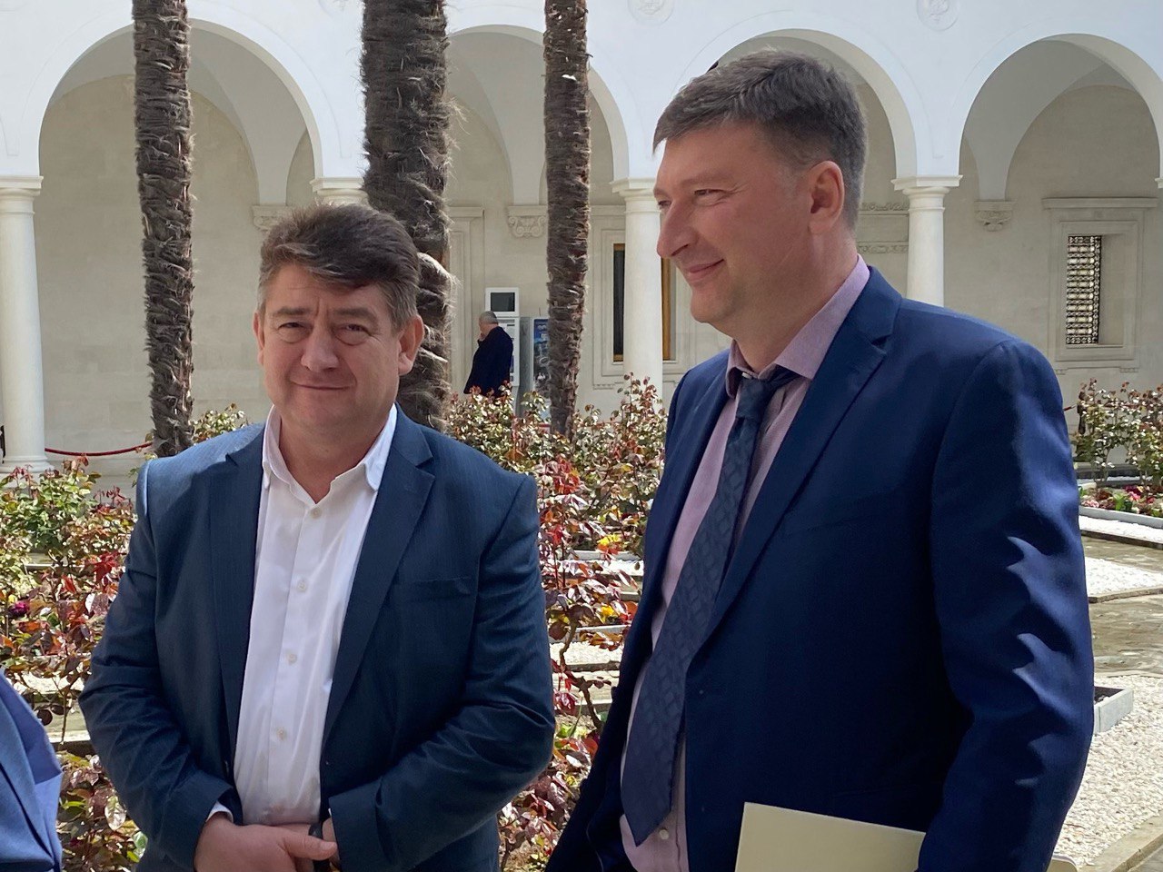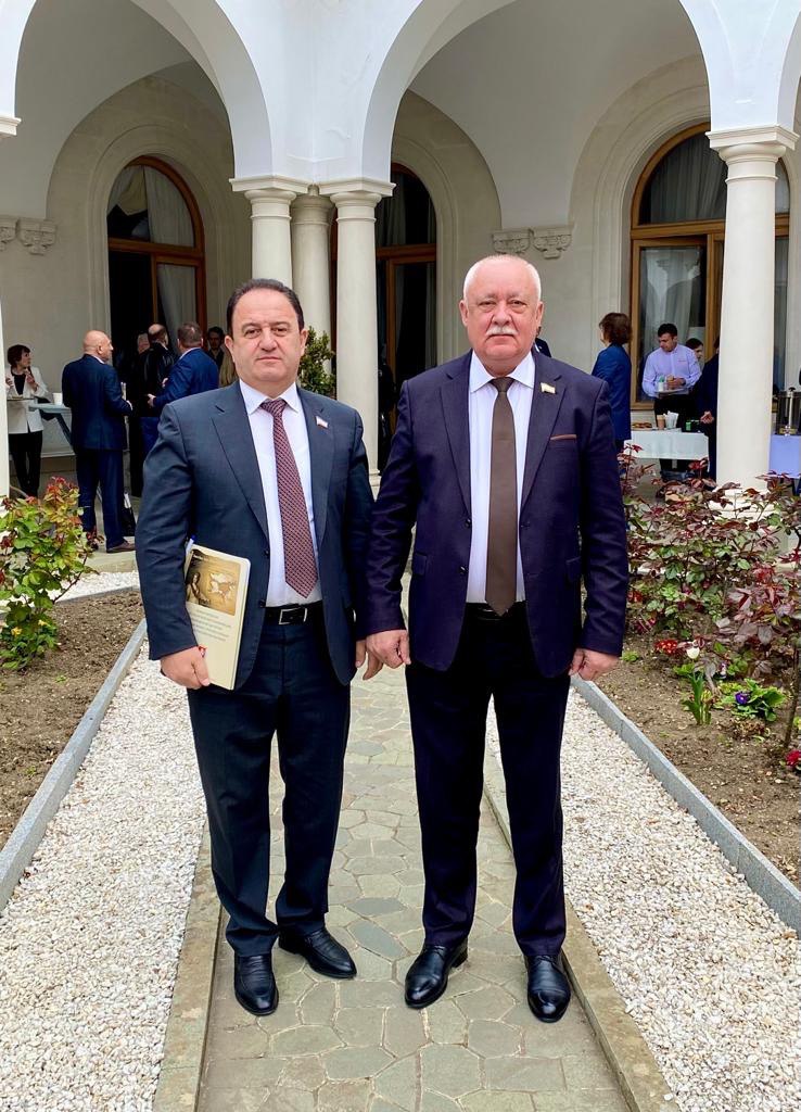 Георгий Мурадов вместе со спикером Государственного совета РК Владимиром Константиновым принял участие в торжественной процедуре гашения конверта с маркой, выпущенной в честь памятной даты, и зачитал приветственное слово участникам конференции от главы Крыма Сергея Аксёнова: