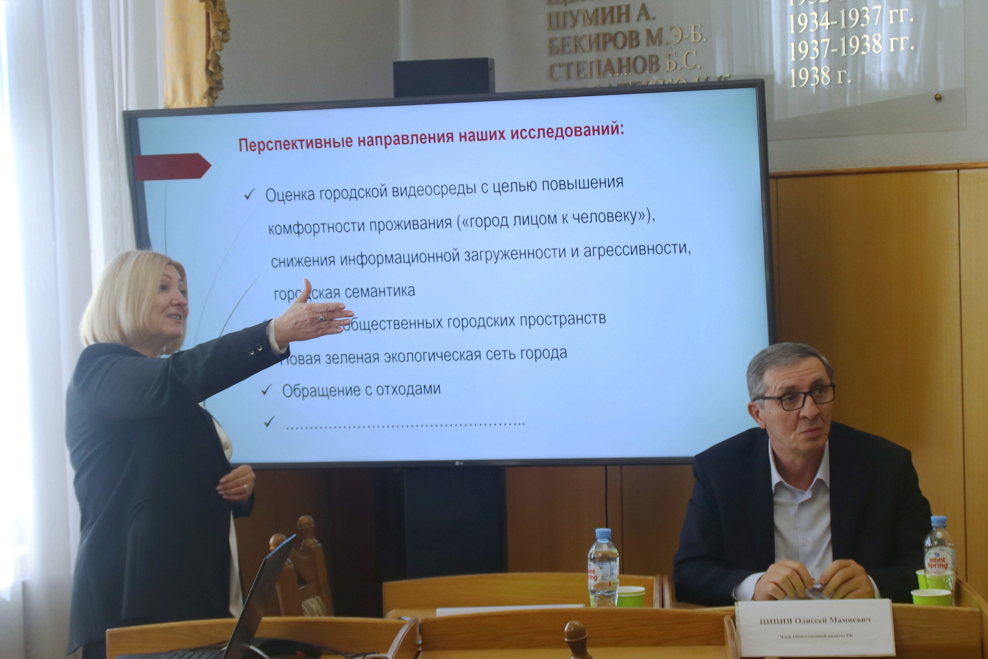Она затронула вопросы обеспечения экологической безопасности, загрязнения воздуха, почв и водных объектов Симферополя, проблемы с акустическим, электромагнитным и радиационным шумом в городе, развитие зелёной инфраструктуры и рассказала о проведении социально-экологических исследований в крымской столице.