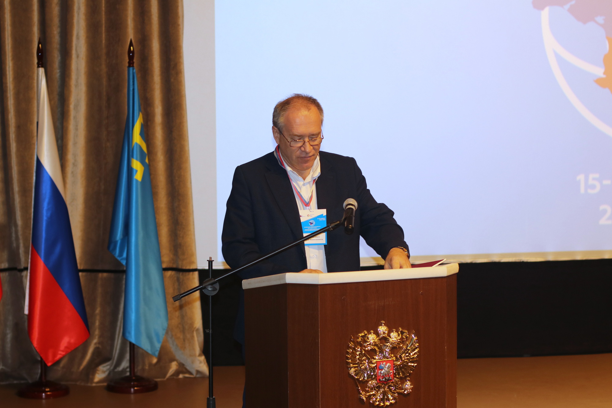 Приветственный адрес от заместителя председателя Совета министров РК – постоянного представителя РК при президенте РФ Георгия Мурадова зачитал его советник Юрий Диденко.
