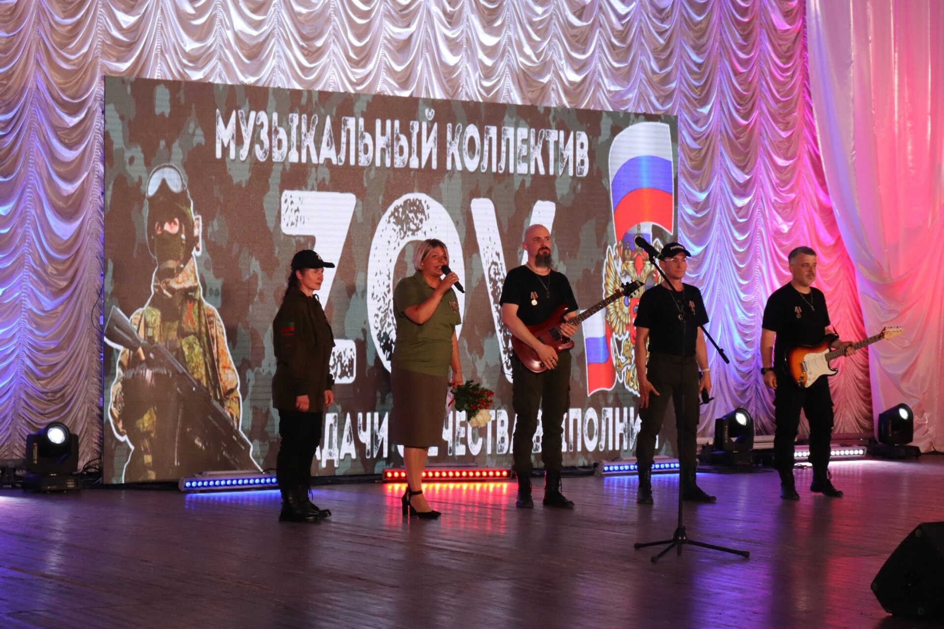 Также на сцене республиканского Дворца культуры профсоюзов выступила вокально-инструментальная группа «ZOV» из Запорожской области.