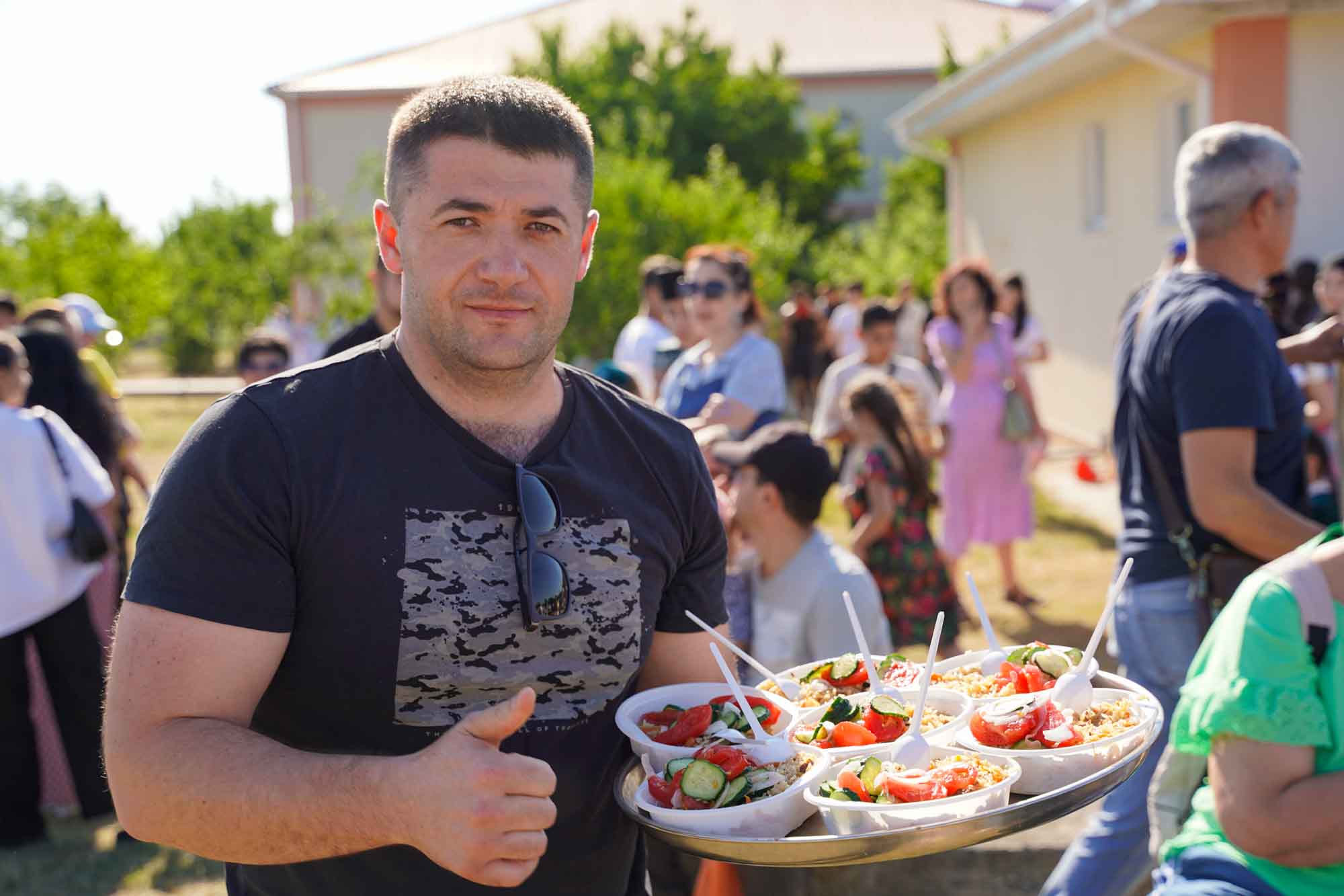 Здесь же можно было попробовать традиционные блюда — плов, салаты, лепёшки и сладости.