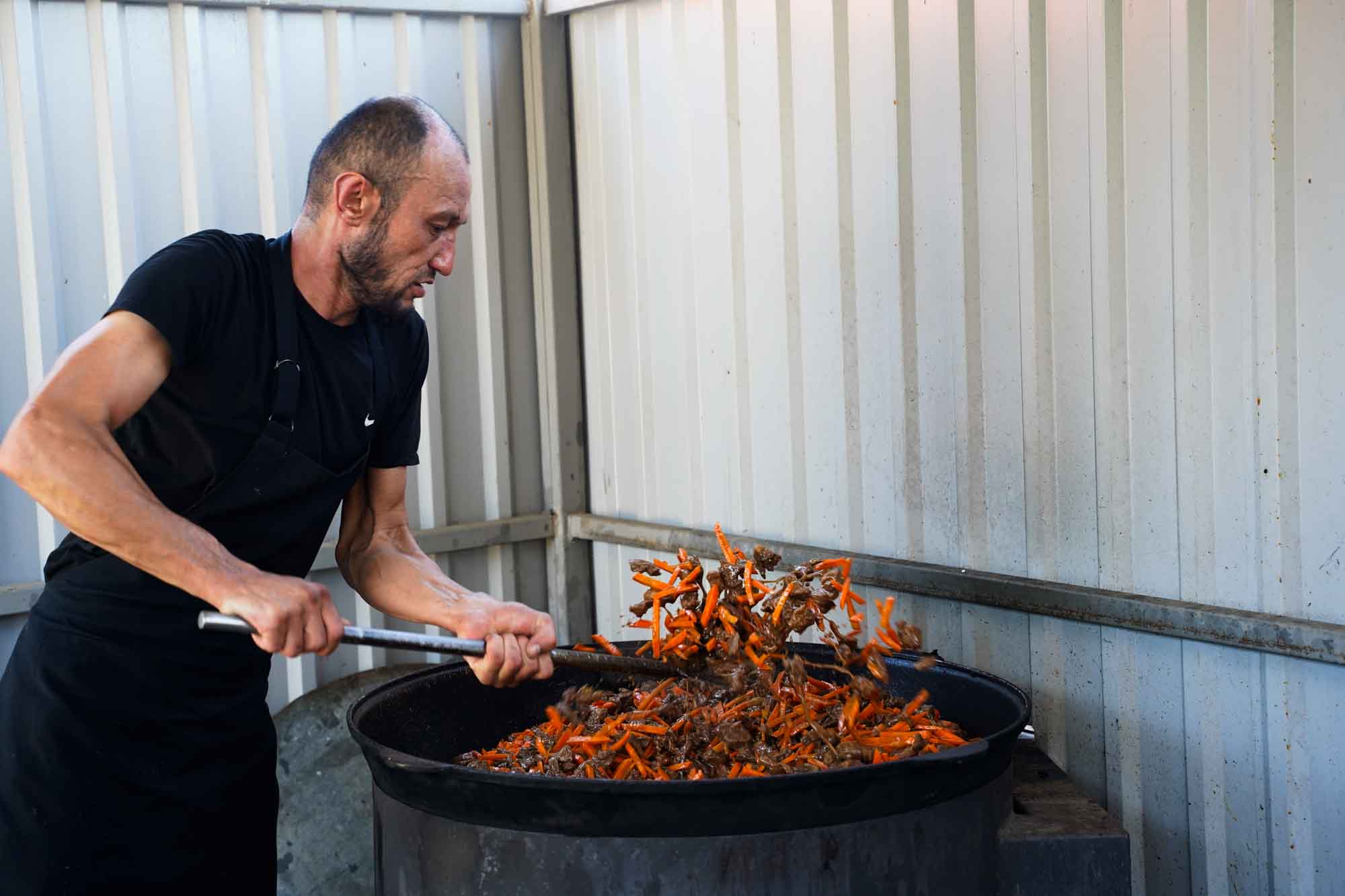 Здесь же можно было попробовать традиционные блюда — плов, салаты, лепёшки и сладости.