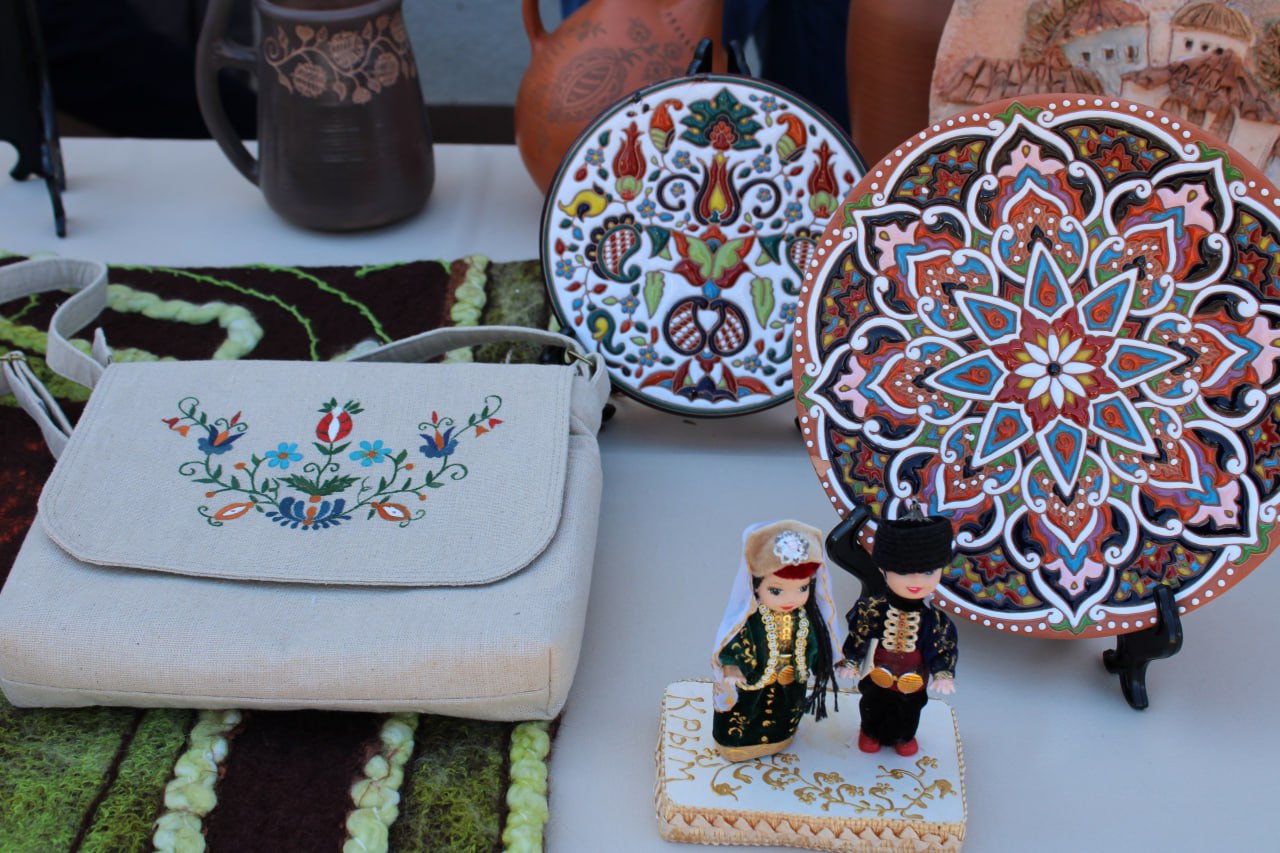 В выставочной зоне были представлены работы мастеров декоративно-прикладного искусства. Авторы делились секретами старинных ремёсел и учили всех желающих вышивать серебряными нитями, изготавливать куклы, рисовать узоры хной.