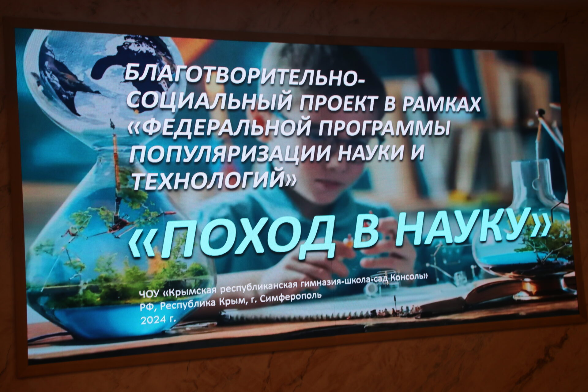 Пилотный проект «Поход в науку» прошёл в Крыму в рамках «Федеральной программы популяризации науки и технологий» в мае. Он создан благодаря туристическому агентству «Tour-viza» и реализован при поддержке Фонда «Одиссей» и Ассоциации школьного кластера по содействию развитию инженерного образования среди молодёжи и опережающей подготовке технологических лидеров.