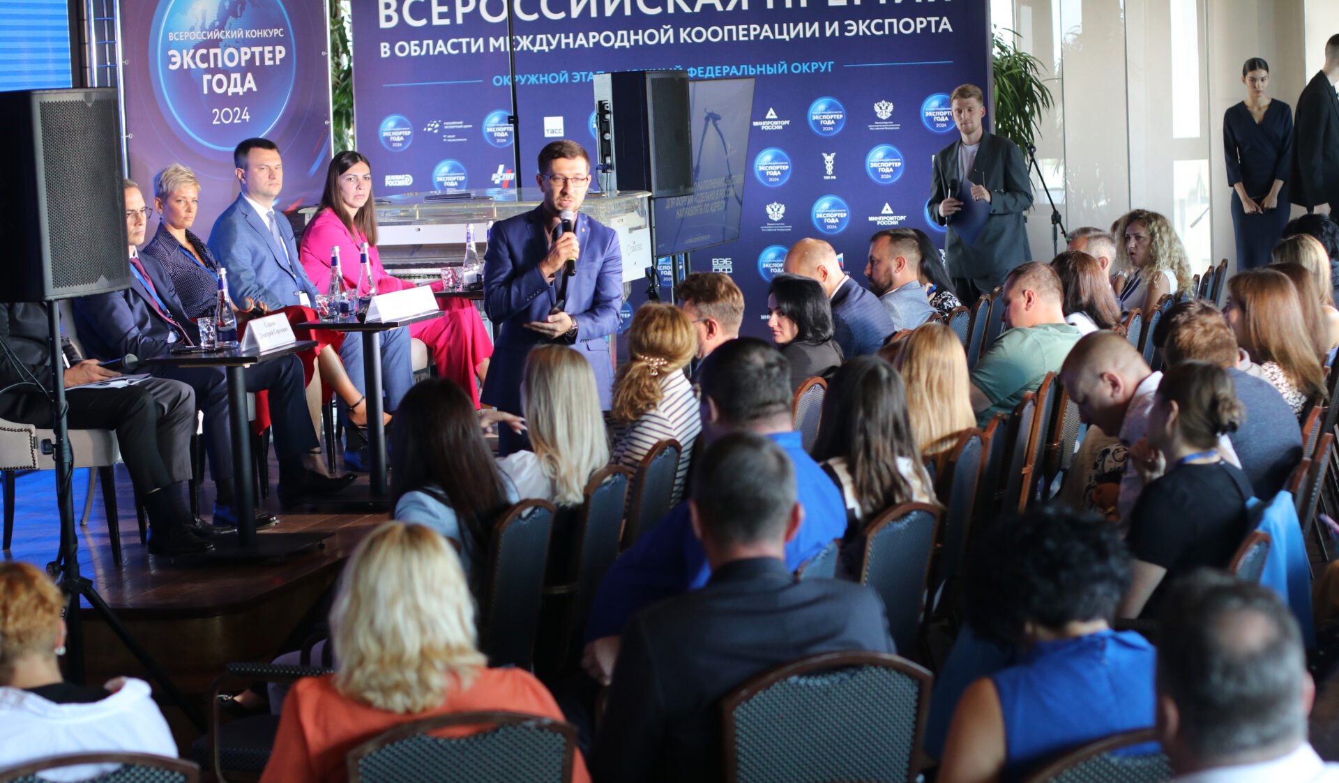 Награды лучшим экспортёрам ЮФО вручили заместитель полномочного представителя президента РФ в ЮФО Кирилл Степанов, заместитель председателя правления РОСЭКСИМБАНКа Роман Смагин, заместитель председателя Совета министров Республики Крым – министр финансов Республики Крым Ирина Кивико, заместитель директора Департамента международной кооперации и лицензирования Минпромторга РФ Ольга Коновалова.