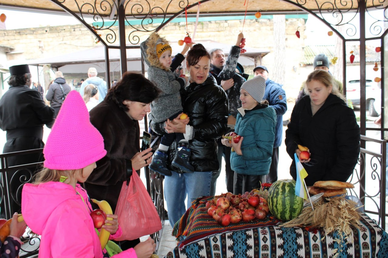 Детей после освящения урожая пригласили собрать фрукты и овощи. Это символическое мероприятие — не только увлекательное занятие, но и давняя традиция. В завершение праздника гости попробовали блюда национальной караимской кухни.