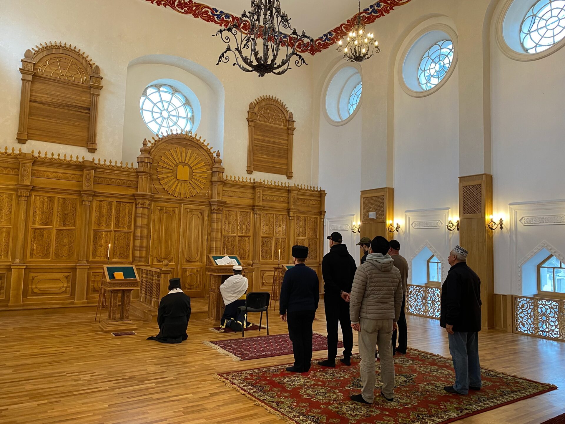 Согласно караимским религиозным традициям, провели молебен. После него все желающие приняли участие в экскурсии по недавно отреставрированному зданию храма. Посетители увидели новое красивое убранство старинной святыни и находящиеся здесь картины, книги, фотографии, утварь.