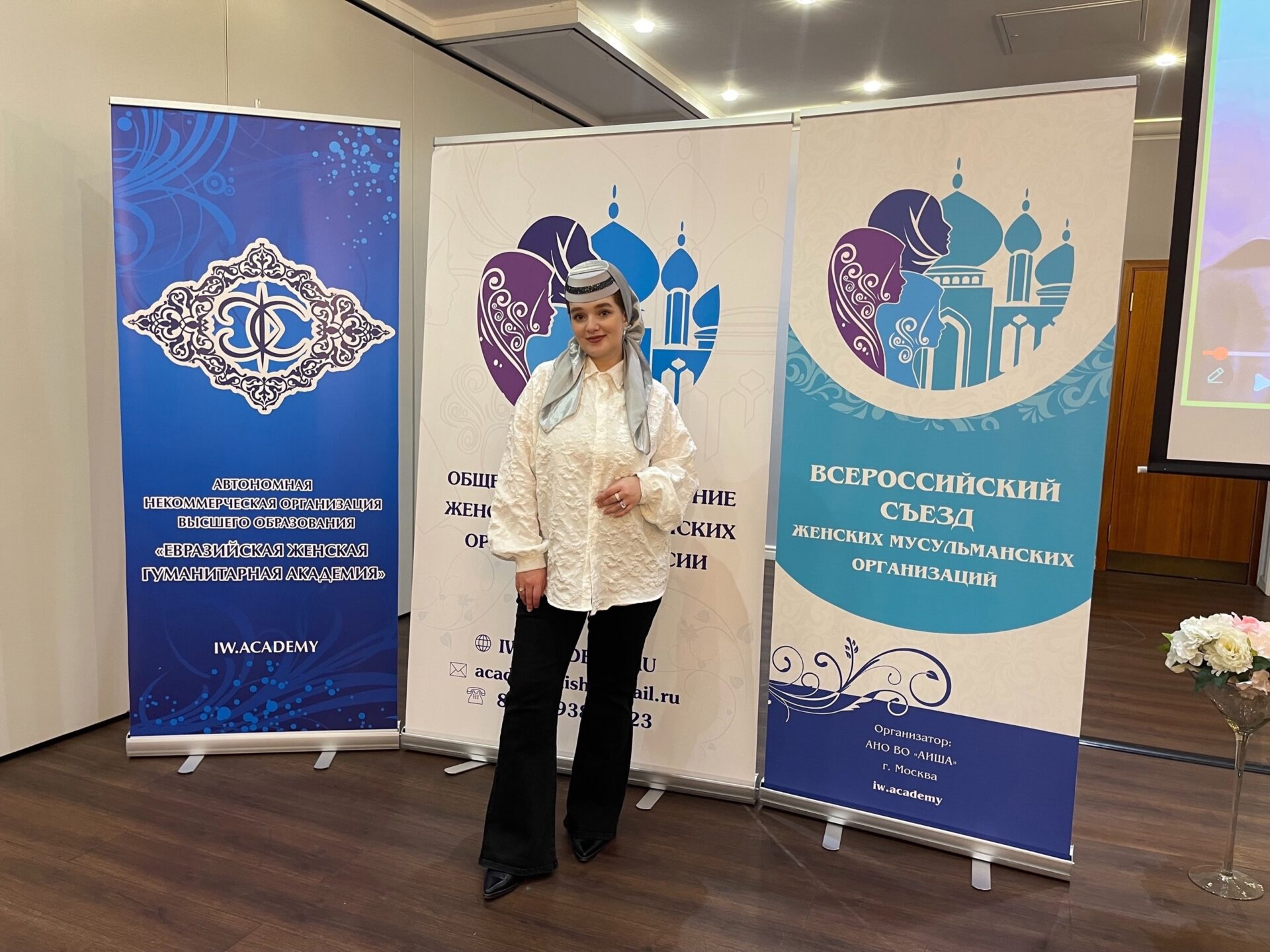 С приветственным словом от имени Муфтия Крыма и Севастополя выступила пресс-секретарь Духовного управления мусульман Крыма, представитель Исламского культурно-просветительского женского центра «Алем-и-Нисван» Эльвина Меметова: