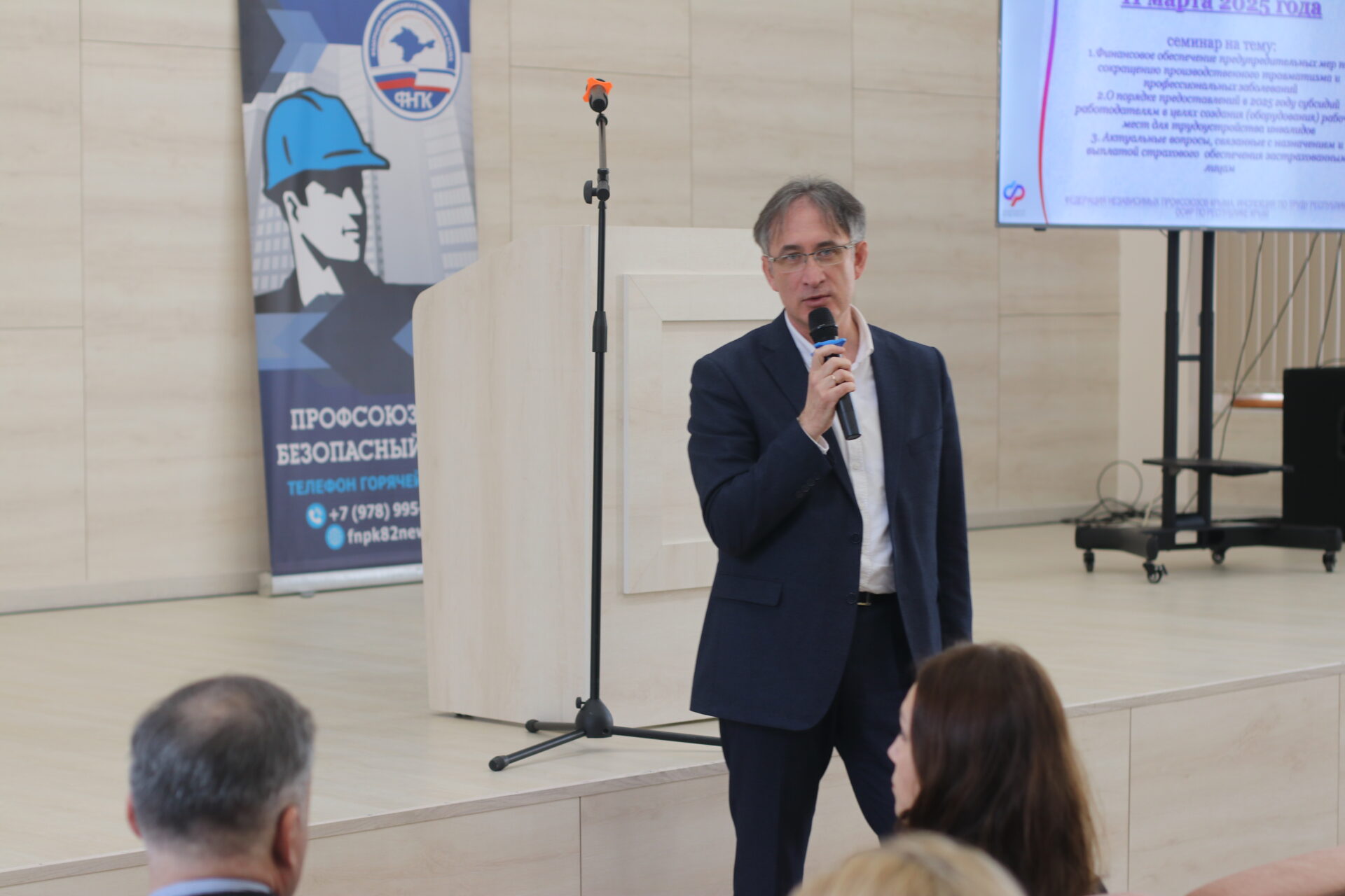 В рамках соглашений о сотрудничестве в Симферополе прошёл двухчасовой семинар, организованный Федерацией независимых профсоюзов Крыма, Отделением Социального фонда России по Республике Крым и Инспекцией по труду Республики Крым. Семинар собрал более сотни профактивистов, специалистов по охране труда и заинтересованных лиц.