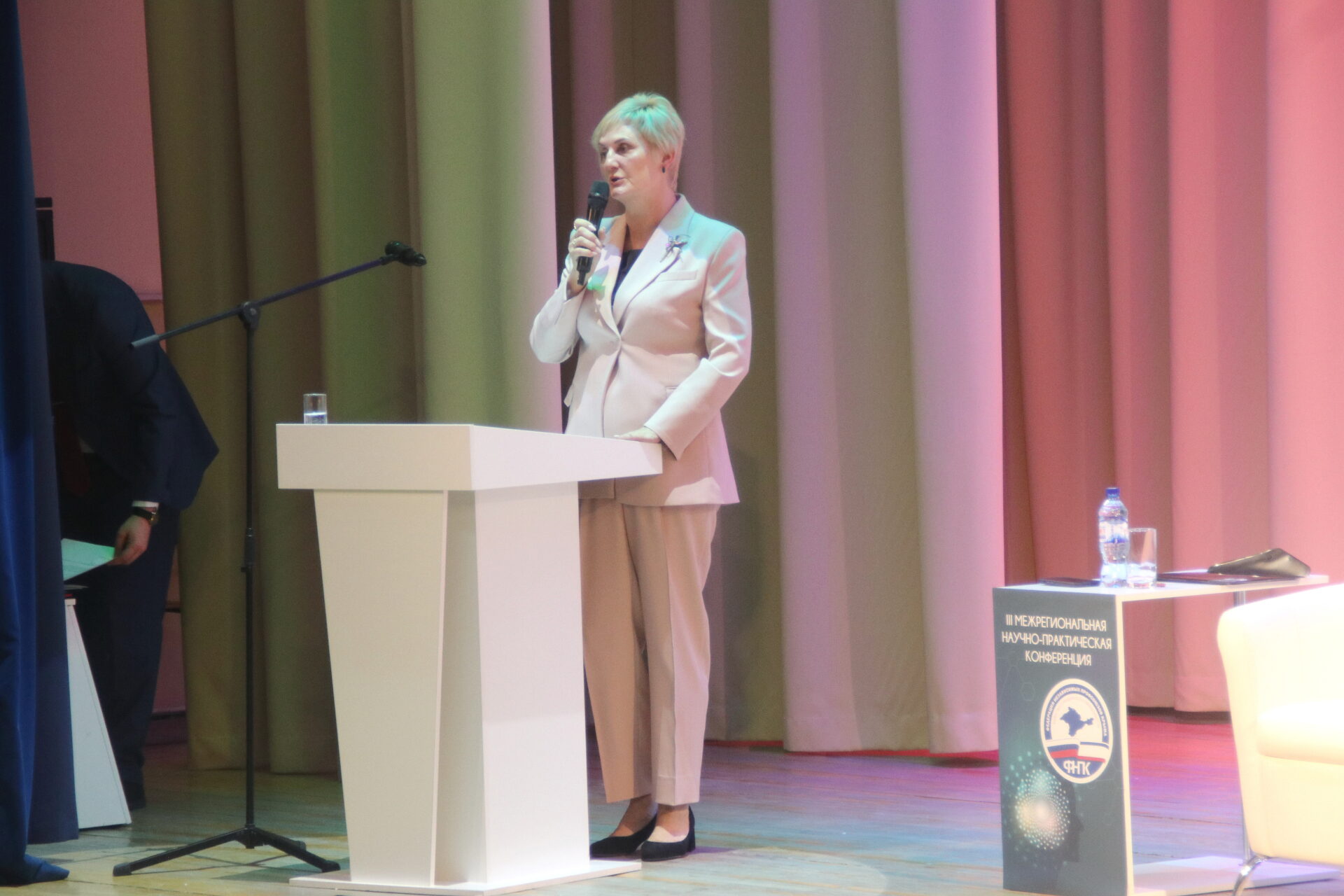 Со сцены участников конференции приветствовали президент Союза торгово-промышленной палаты Республики Крым Сергей Диюк, директор Фонда поддержки предпринимательства Крыма Владислав Ганжара, заместитель Министра труда и социальной защиты Республики Крым Данил Стадник, заместитель председателя Объединения работодателей Крыма Владимир Филонов, начальник управления промышленного комплекса Министерства промышленности и торговли Республики Крым Денис Малтабар. От имени председателя Общественной палаты Республики Крым Александра Форманчука с открытием конференции присутствующих поздравил заместитель председателя ОП РК Роман Чегринец.
