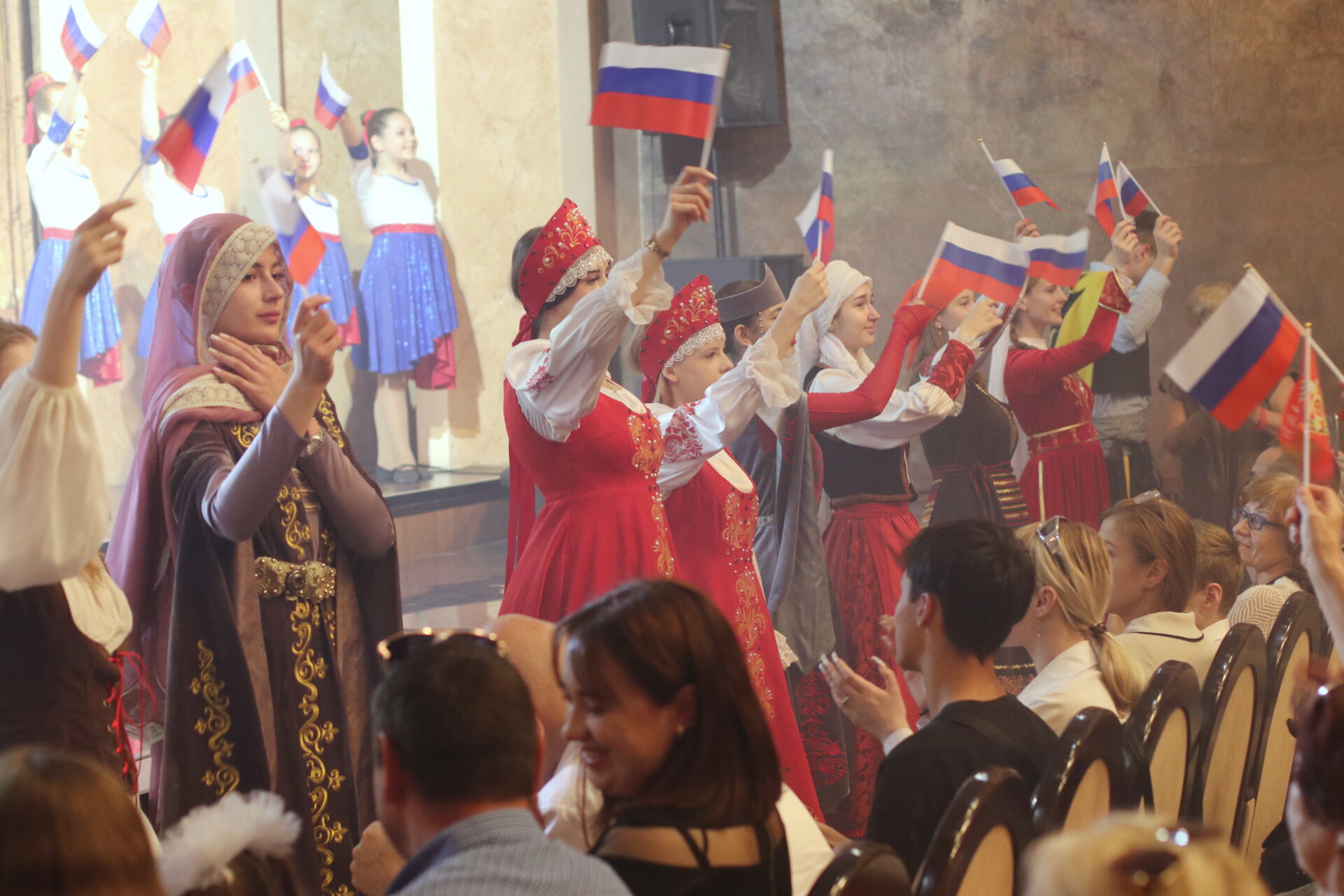 На сцене Крымскотатарского академического музыкально-драматического театра прошёл праздничный концерт, посвящённый Дню России. Мероприятие организовали Дом дружбы народов Крыма при поддержке Государственного комитета по делам межнациональных отношений Республики Крым. Почётными гостями праздника стали депутаты Государственного совета Крыма, члены Общественной палаты, представители национально-культурных объединений республики.