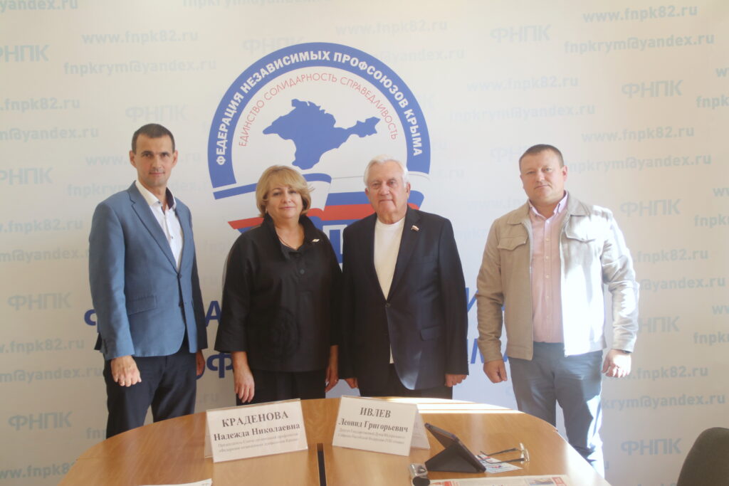 В Симферополе в Доме профсоюзов прошла рабочая встреча председателя Федерации независимых профсоюзов Крыма Надеждой Краденовой с членом Комитета Государственной Думы РФ по контролю Леонидом Ивлевым. В рамках встречи Надежда Николаевна рассказала депутату о некоторых профсоюзных инициативах с просьбой поддержать их в парламенте на законодательном уровне.