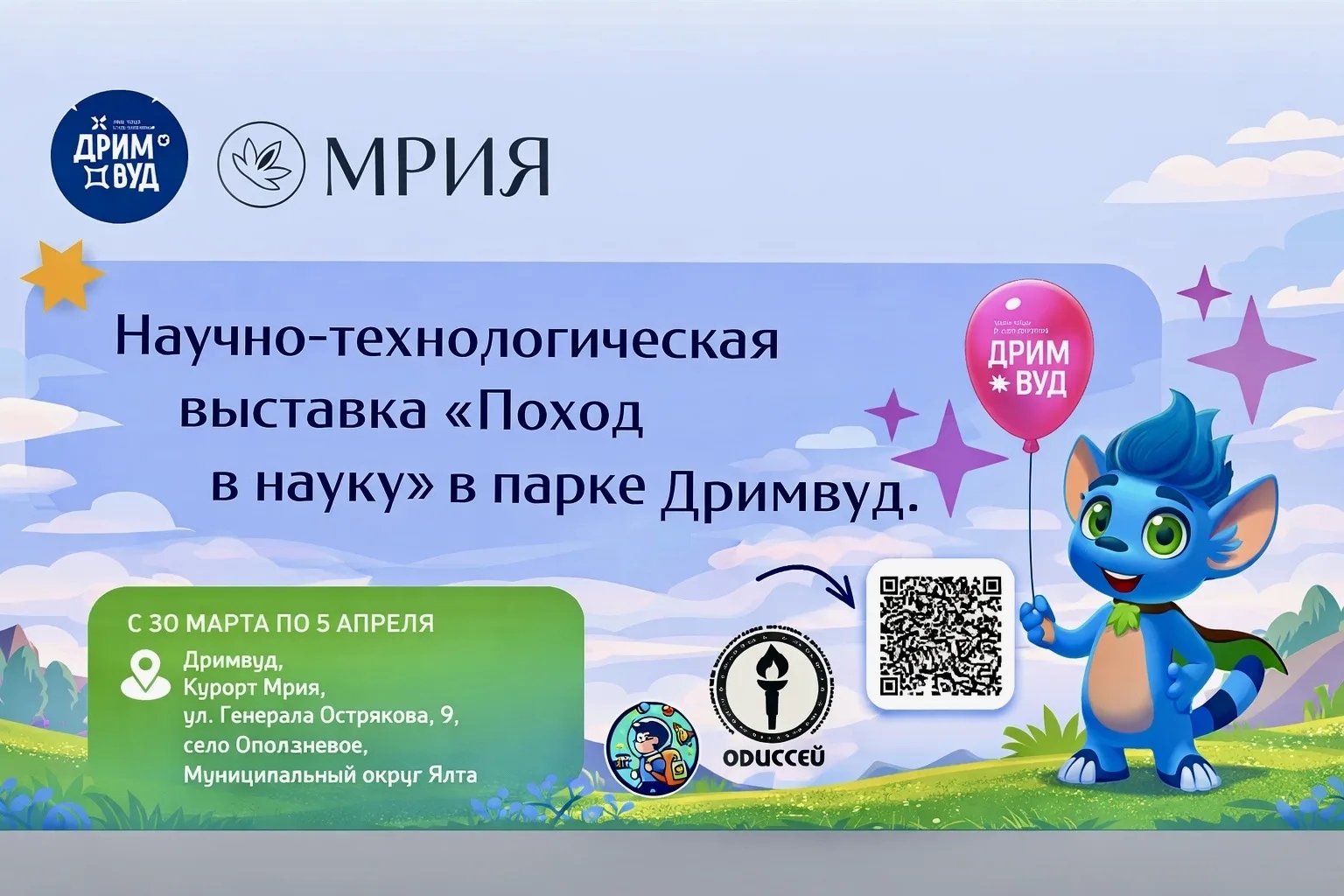 С 30 марта по 5 апреля 2026 года в тематическом парке «Дримвуд» на территории курорта «Мрия» откроется всероссийская научно-техническая выставка «Поход в науку. Территория открытий».