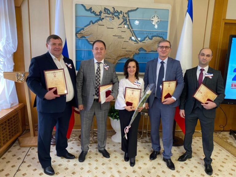 В честь Дня республики Крым в Государственном Совете РК прошла торжественная церемония награждения крымчан, которые внесли значительный вклад в развитие республики. Председатель Госсовета Владимир Константинов вручил государственные премии, награды и ценные подарки. Среди награждённых — авторы презентационной книги-альбома «Греки. Крымская…